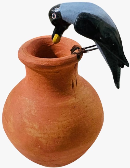 காலையில் அவருக்கு முதல் வியாபாரம் என்பதால் வியாபாரம் செய்யாமல் போவதற்கு சங்கடமாக இருந்ததால் என் அம்மா, ஒரு காகம் பானையில் கற்களை போட்டு தண்ணீரை மேலெழும்பச் செய்து தண்ணீர் குடிக்கும் கான்செப்ட்டில் இருக்கும் பொம்மை ஒன்றை எடுத்தார். (இணைத்துள்ள படமும் அதுவே)